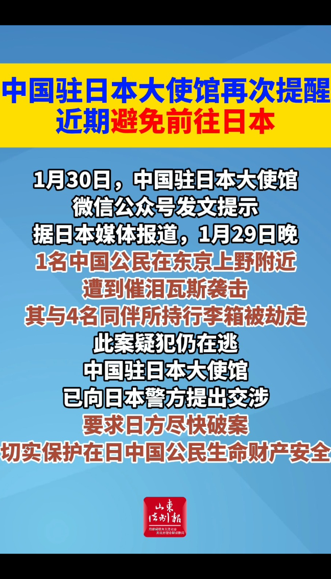 中国驻日本大使馆再次提醒近期避免前往日本