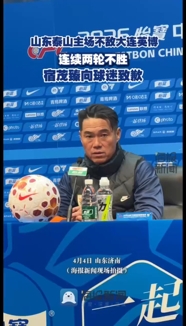 山东泰山队连续两轮不胜,宿茂臻向球迷致歉