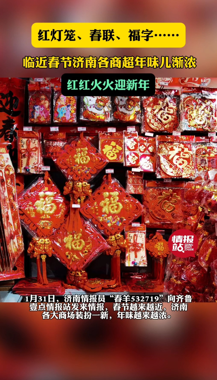 情报站|红灯笼、春联、福字…春节临近济南各商超红红火火年味浓