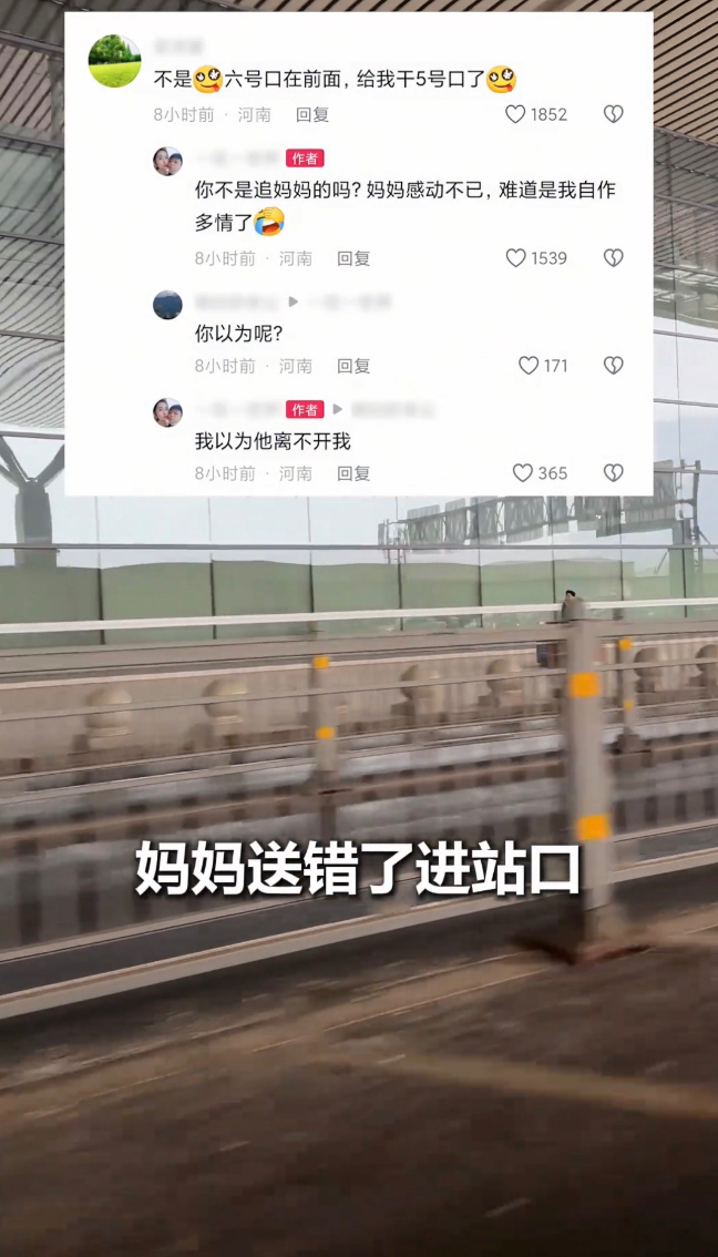 妈妈送儿子到高铁站,分别后儿子在后面追着跑,妈妈感动发视频