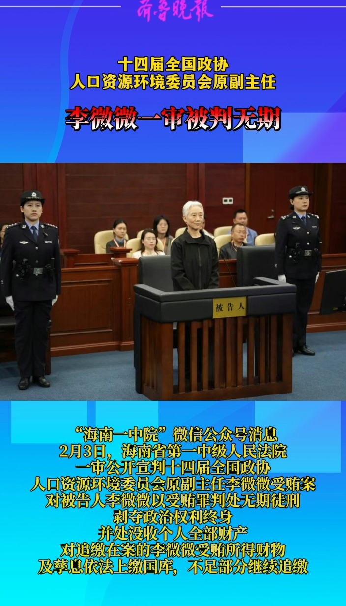 十四届全国政协人口资源环境委员会原副主任李微微一审被判无期