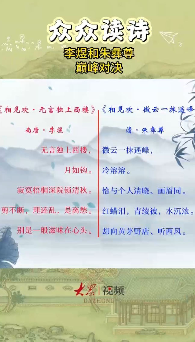 众众读诗丨《太平年》火了!听听李煜和朱彝尊的巅峰对决