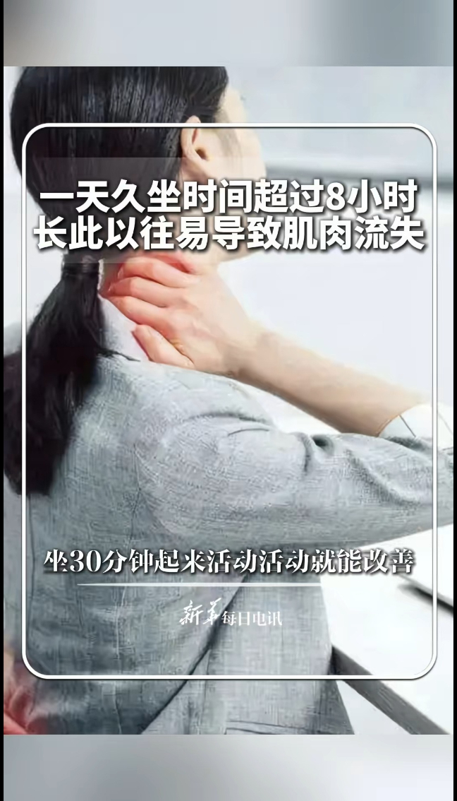 一天久坐时间超过8小时,长此以往易导致肌肉流失