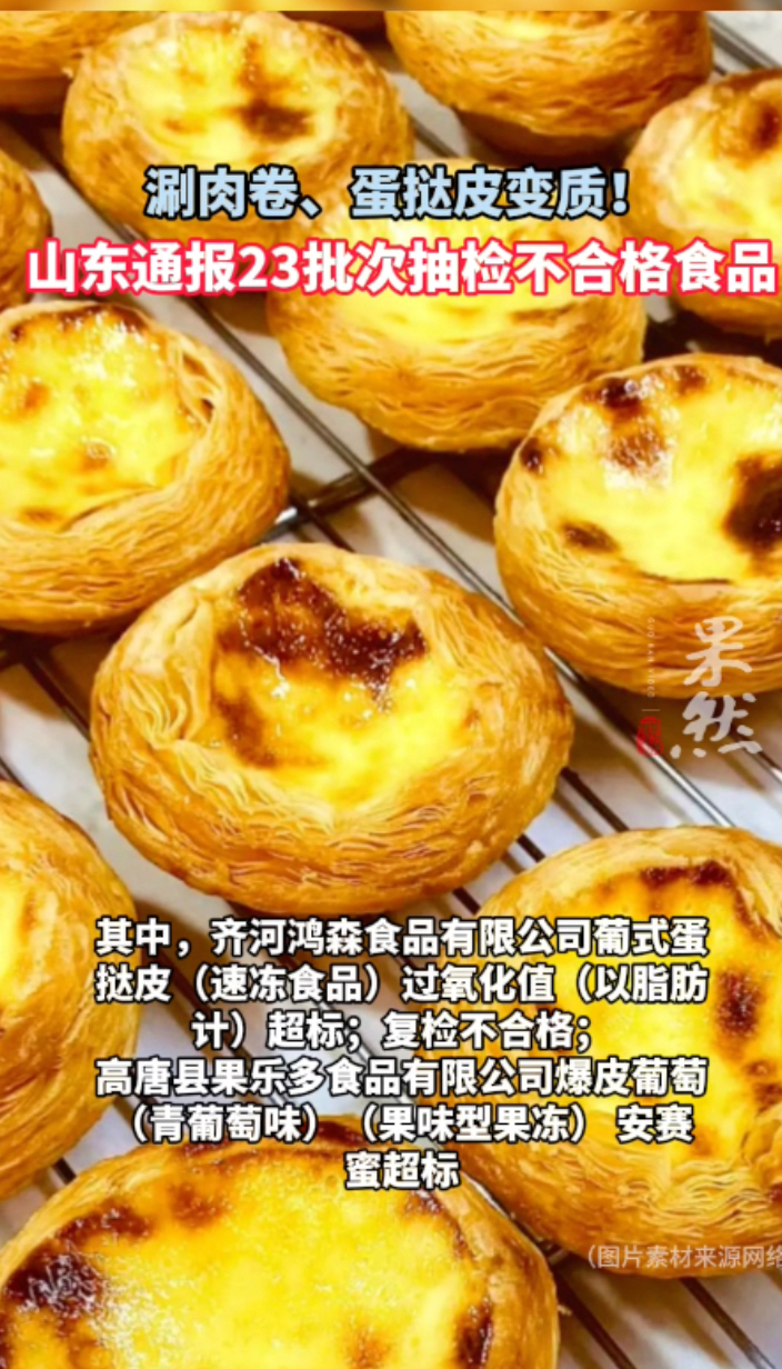 果然视频·食安哨|涮肉卷、蛋挞皮变质!山东通报23批次抽检不合格食品