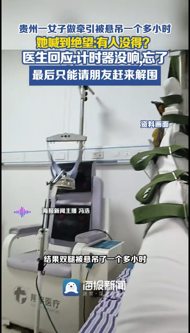 主播说丨贵州一女子做牵引被悬吊一个多小时