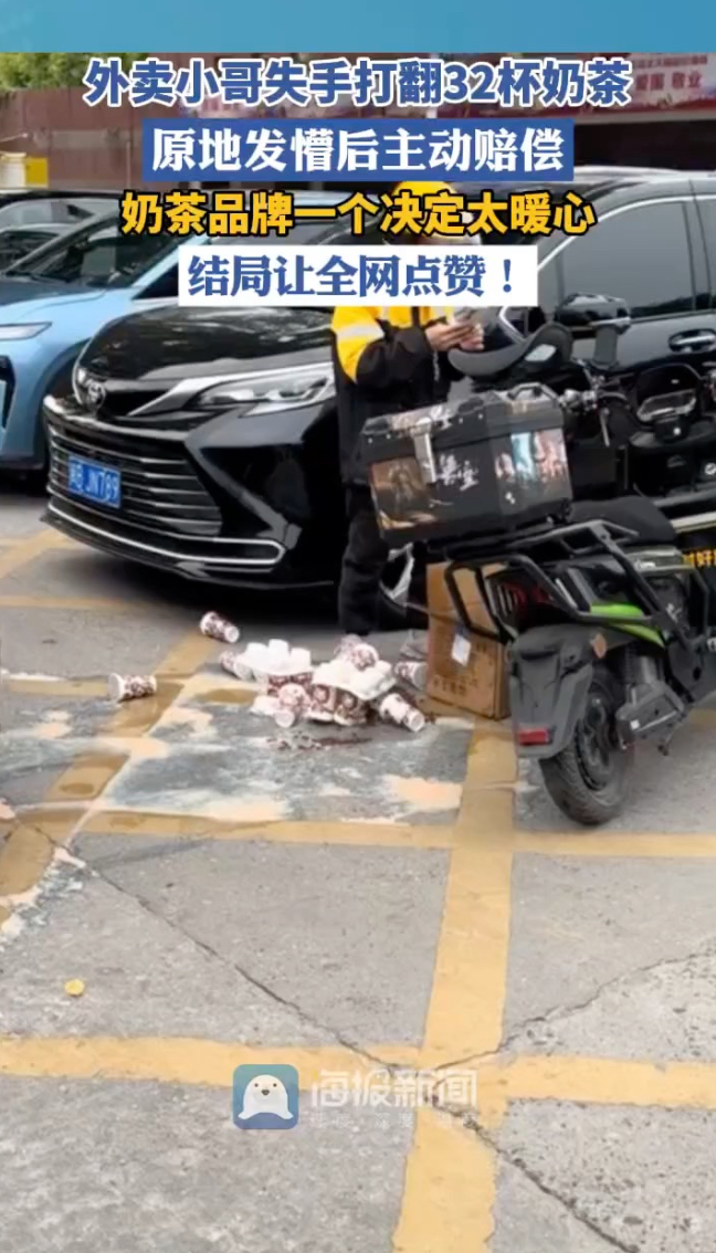 主播说|外卖小哥失手打翻32杯奶茶,原地发懵后主动赔偿,奶茶品牌一个决定太暖心,结局让全网点赞!