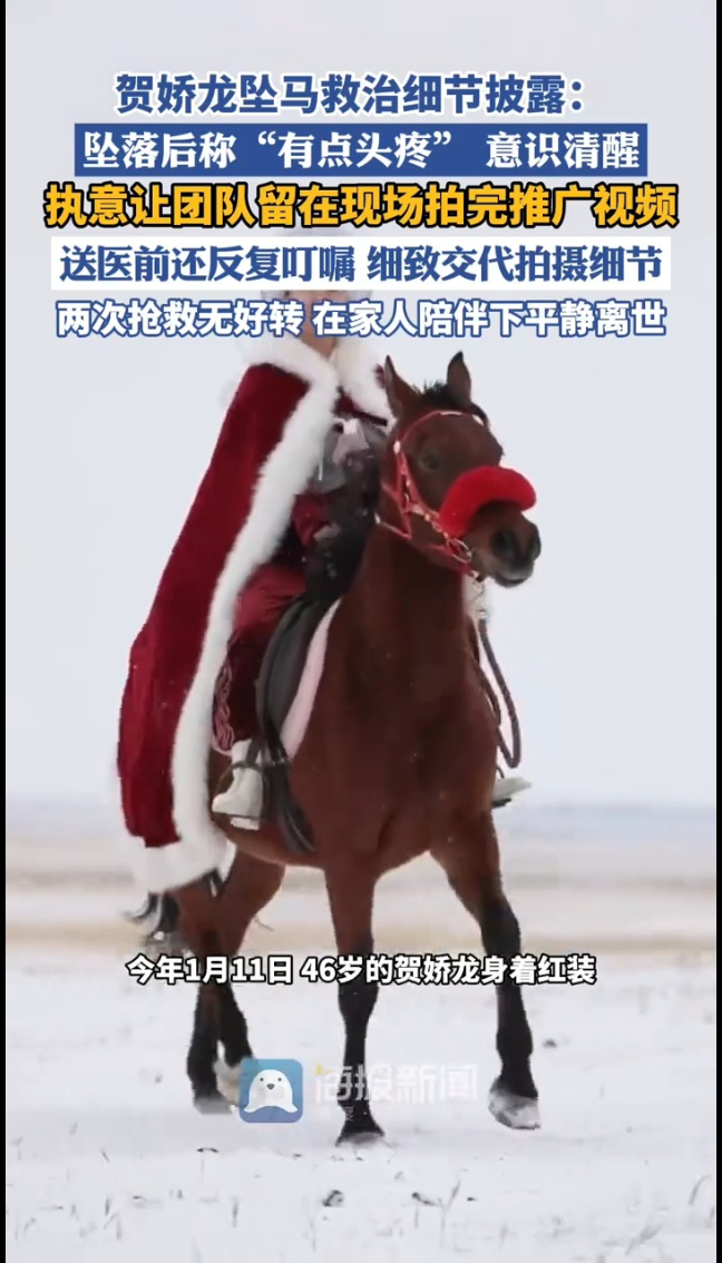 主播说|贺娇龙坠马救治细节披露:坠落后称“有点头疼” 意识清醒,执意让团队留在现场拍完推广视频