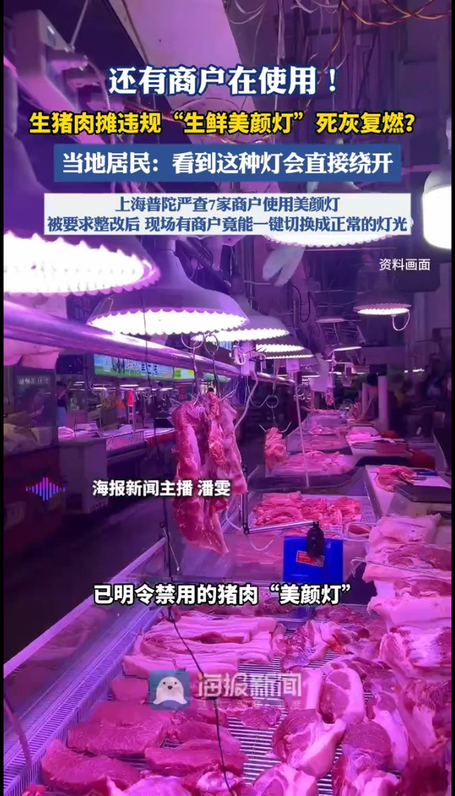 主播说丨还有商户在使用!生猪肉摊违规“生鲜美颜灯”死灰复燃?当地居民:看到这种灯会直接绕开