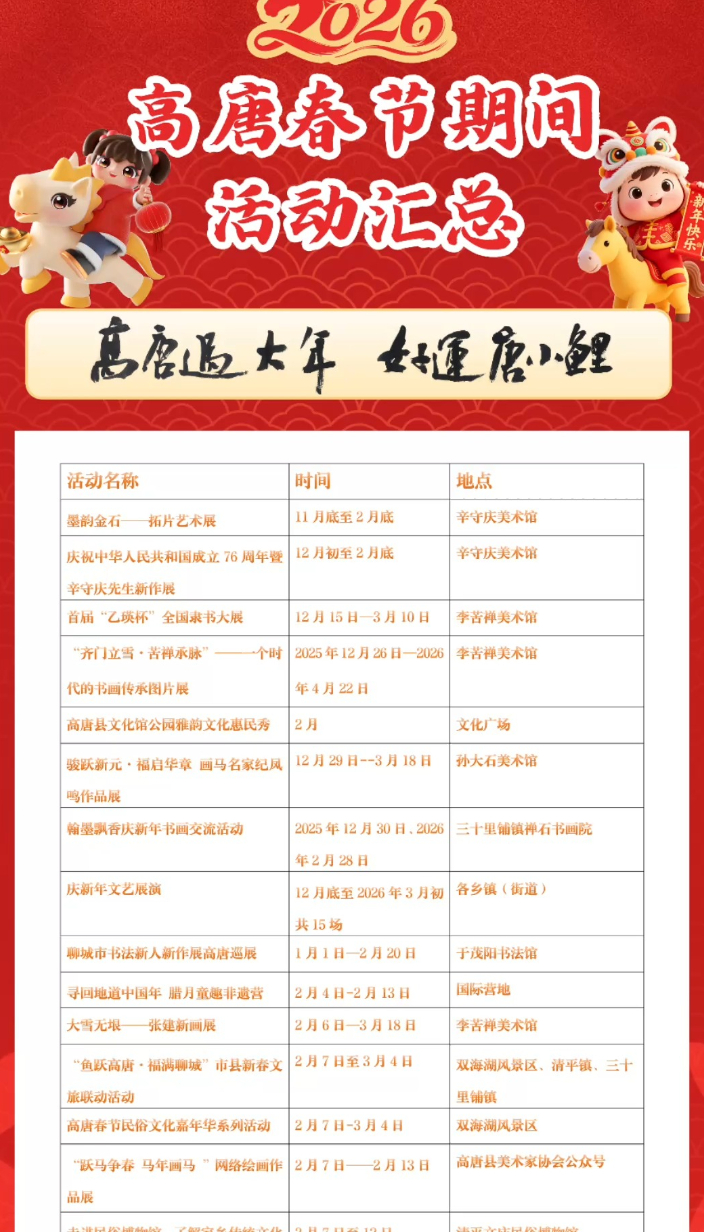 2026年高唐春节期间节目单来啦