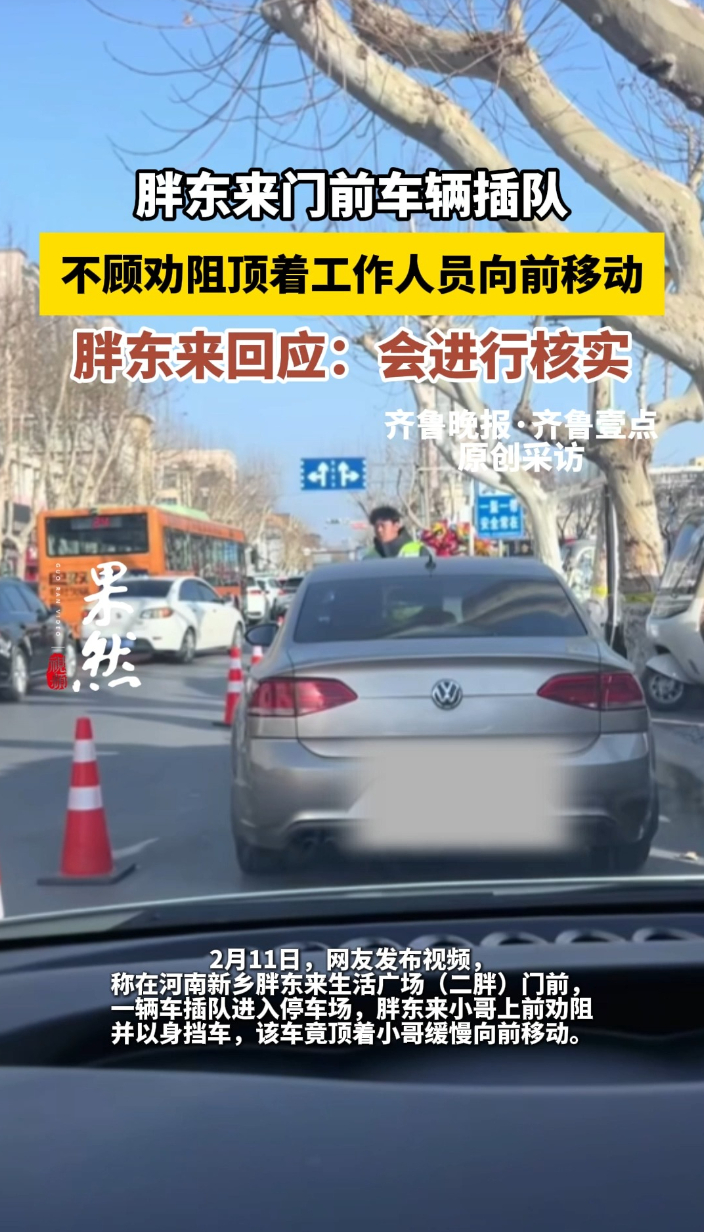 果然视频|胖东来门前车辆插队,不顾劝阻顶着工作人员向前移动