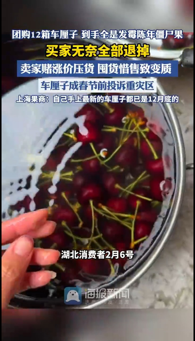 主播说|团购12箱车厘子,到手全是发霉陈年僵尸果,卖家赌春节期间涨价压货,囤货惜售致变质
