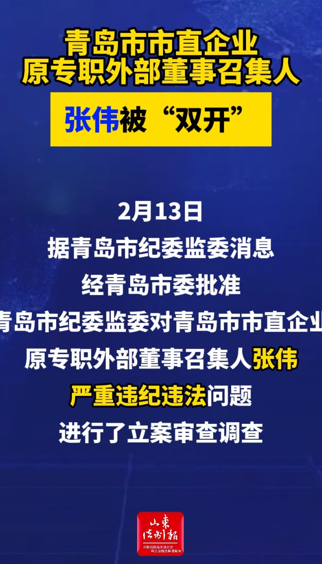 青岛市市直企业原专职外部董事召集人张伟被“双开”