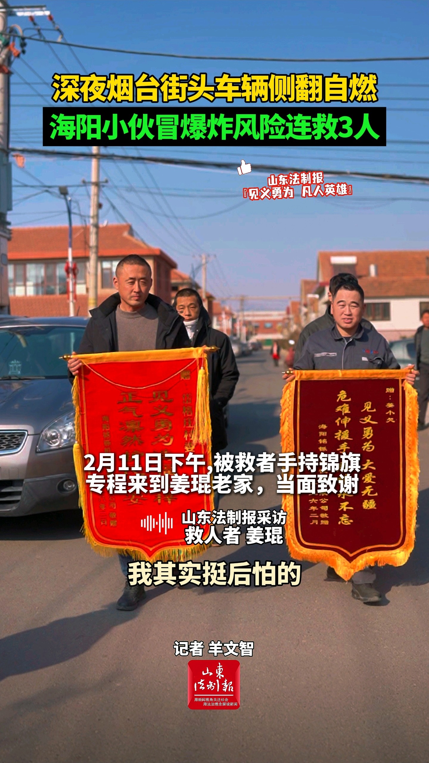 深夜烟台街头车辆侧翻自燃,海阳小伙冒爆炸风险连救3人