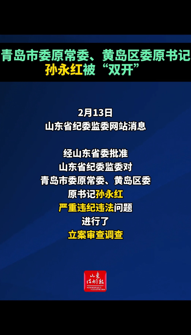 青岛市委原常委、黄岛区委原书记孙永红被“双开”