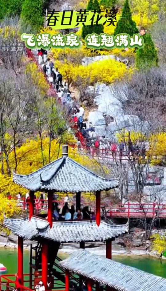 飞瀑流泉,连翘满山!春日的青州黄花溪,无滤镜!