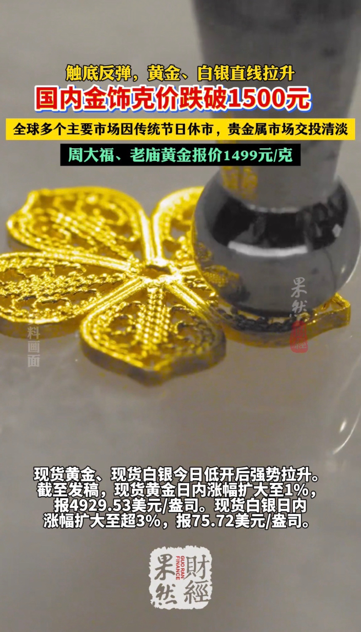 果然财经 | 黄金白银触底反弹,国内金饰克价跌破1500元