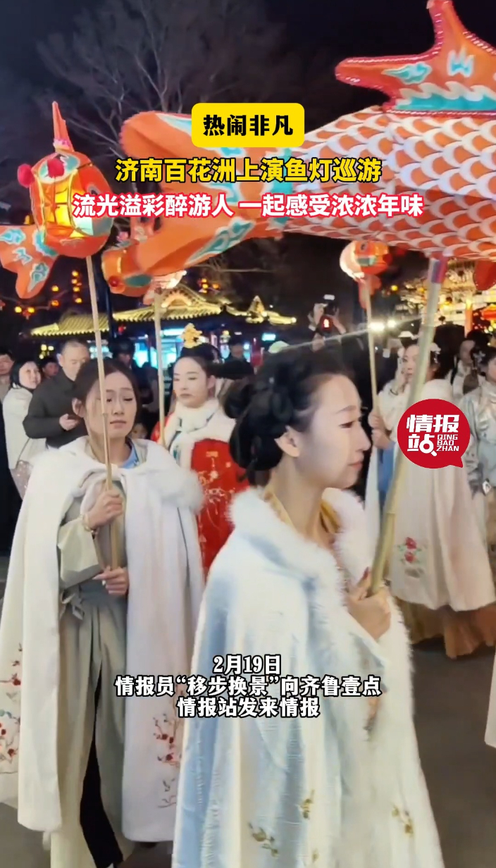壹粉过大年|浓浓年味!济南百花洲上演鱼灯巡游,流光溢彩醉游人