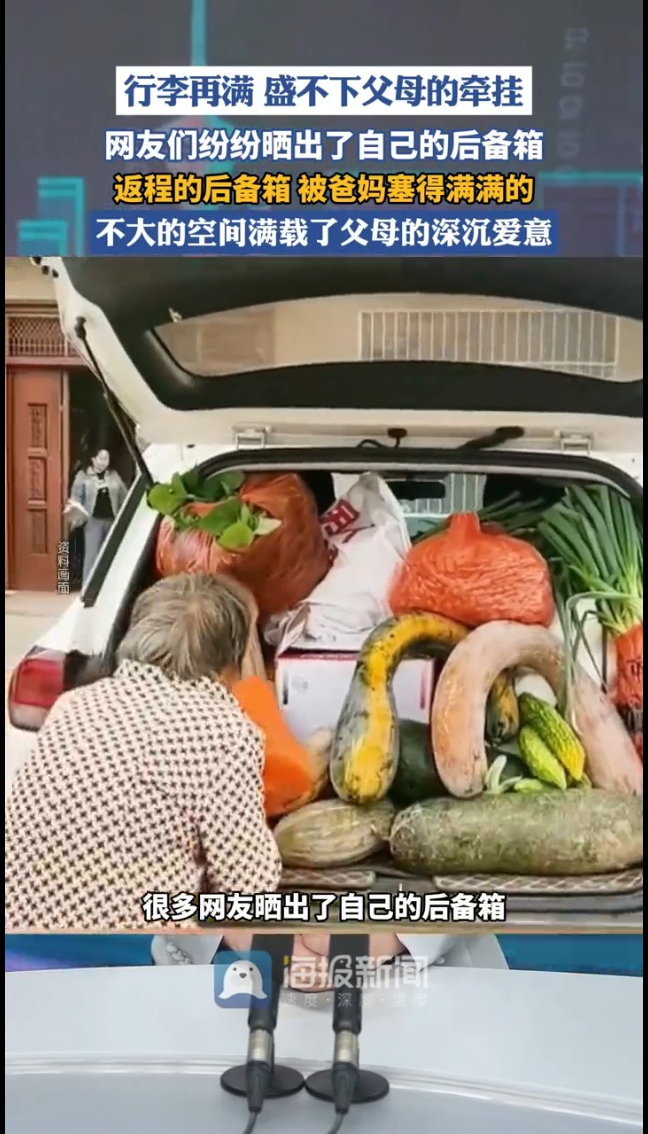 主播说丨行李再满盛不下父母的牵挂,网友们纷纷晒出自己的后备箱