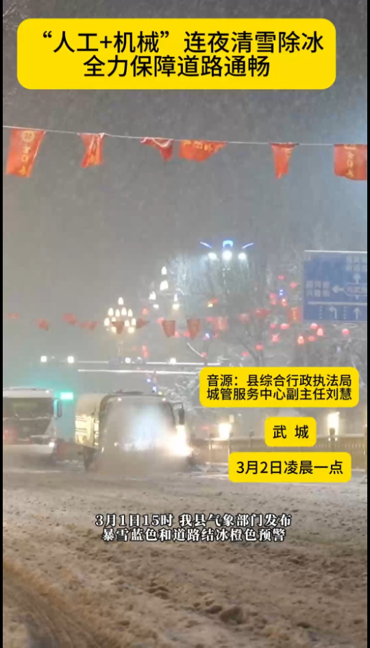“人工+机械”连夜清雪除冰 全力保障道路通畅