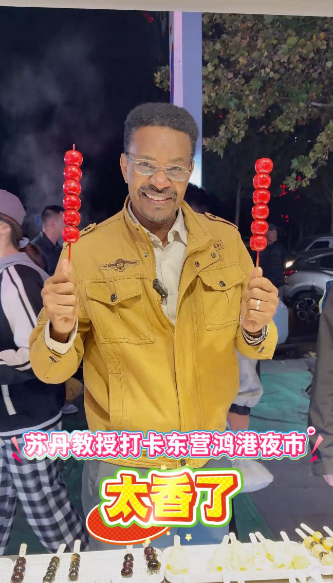 苏丹教授打卡东营鸿港夜市,感受城市烟火魅力