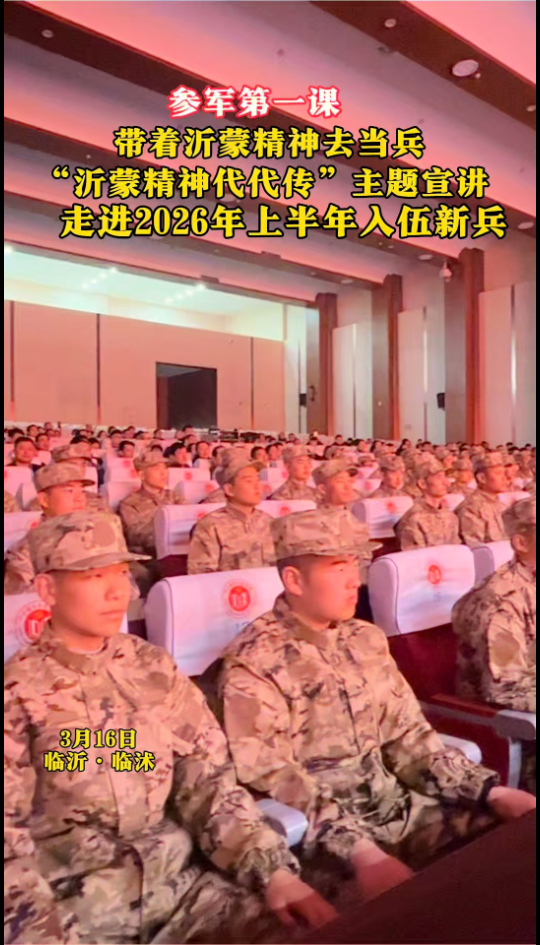 临沭县开展“沂蒙精神代代传——带着沂蒙精神去当兵”主题宣讲,为2026年上半年入伍新兵上好思想政治第一课。