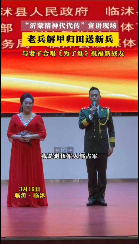 临沭县“沂蒙精神代代传”主题宣讲走进2026年上半年入伍新兵现场,退伍老兵与妻子合唱《为了谁》祝福新战友!