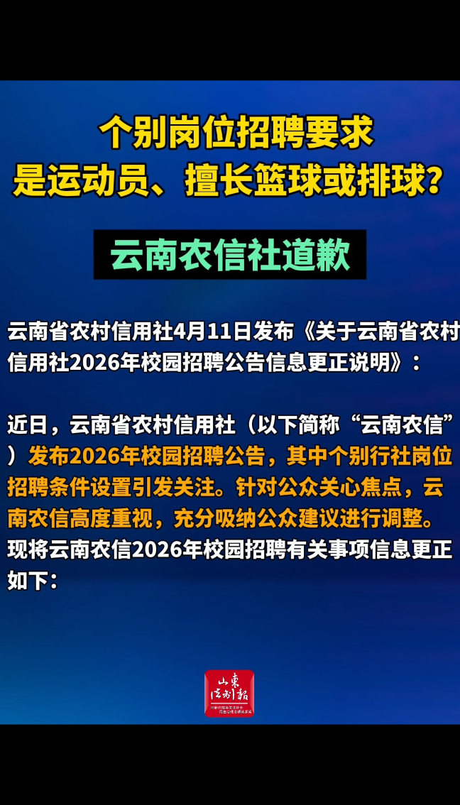 个别岗位招聘要求是运动员、擅长篮球或排球?云南农信社道歉