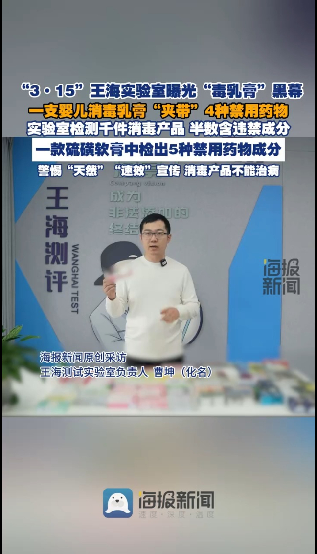 “3·15”探秘王海实验室②:一支婴儿消毒乳膏里“夹带”4种禁用药物,检测上千件消毒产品,半数有非法添加