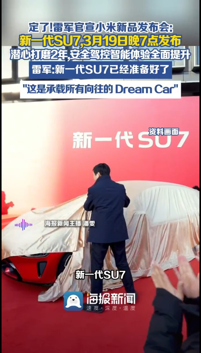 主播说 | 雷军官宣小米新品发布会:新一代SU7,3月19日晚7点发布