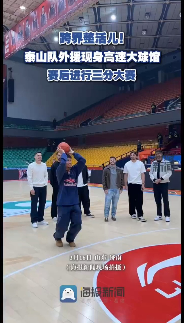 跨界整活儿!泰山队外援现身高速大球馆,赛后进行三分大赛