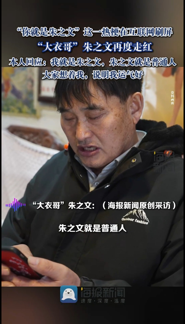 “大衣哥”朱之文回应“你就是朱之文”网络热梗:我不生气,大家想着我说明运气好