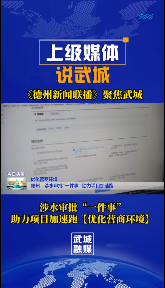 《德州新闻联播》聚焦武城——涉水审批“一件事” 助力项目加速跑【优化营商环境】