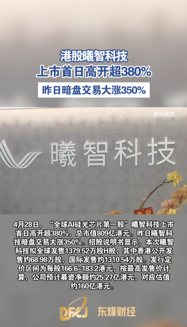 东烽财经丨港股曦智科技上市首日高开超380%,昨日暗盘交易大涨350%