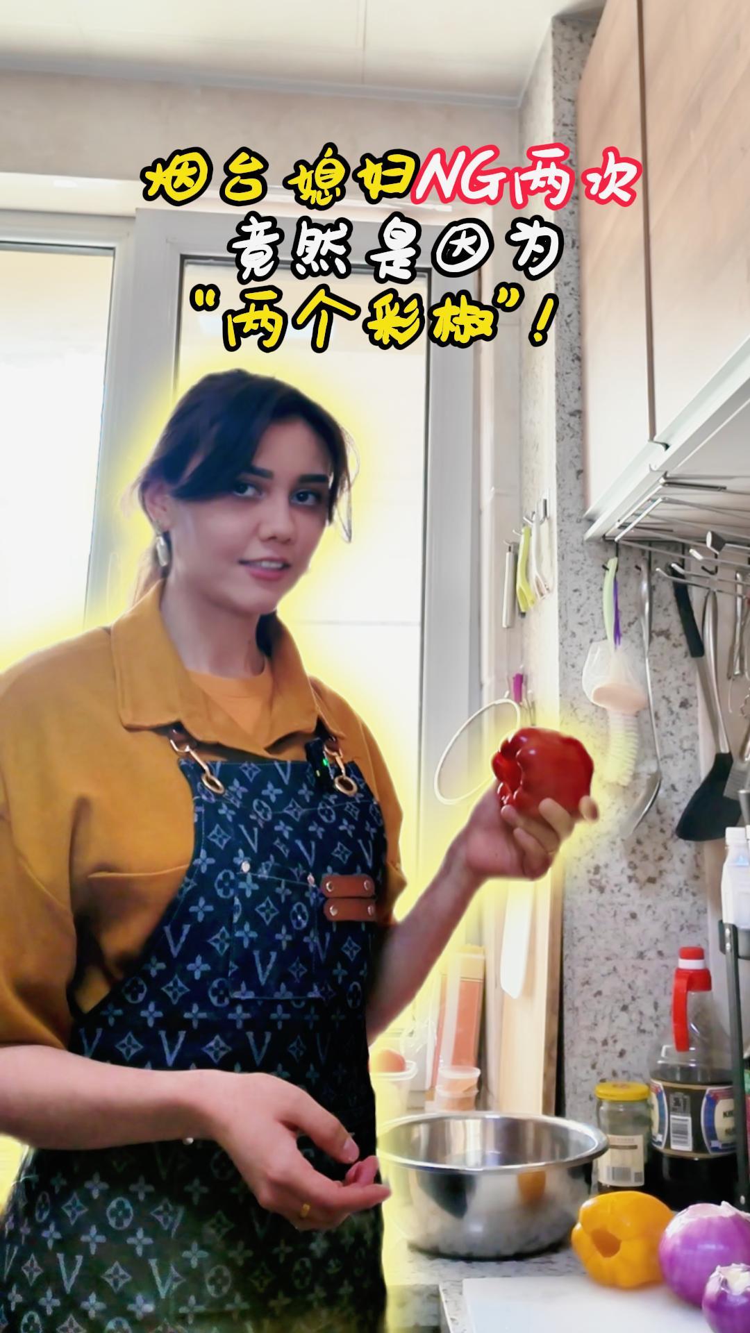 烟台媳妇NG两次,竟然是因为“两个彩椒”!#NG两次 #烟台媳妇说中文 #花絮 #土库曼斯坦美食 #家庭厨房