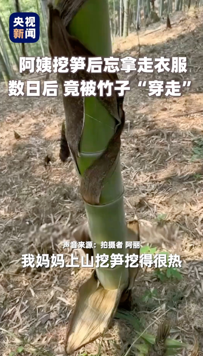 阿姨在竹林挖笋忘拿衣服,数日后,衣服竟被竹子“穿走”