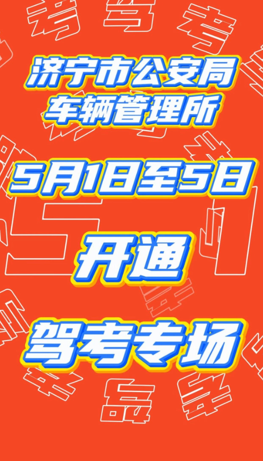 济宁市公安局车辆管理所开通五一假期“驾考专场”,全力满足假期期间考生考试需求。5月1日至5日,开放考场6处,共发布各科目考试计划名额10057个