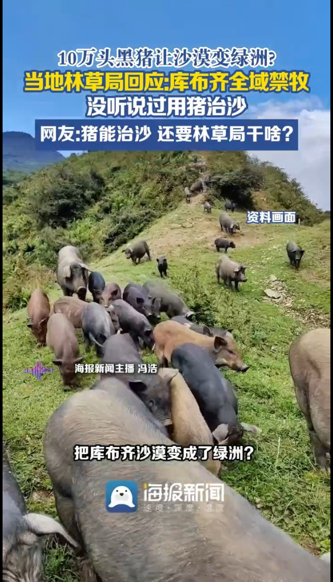 主播说 | 10万头黑猪让沙漠变绿洲? 当地林草局回应:库布齐全域禁牧