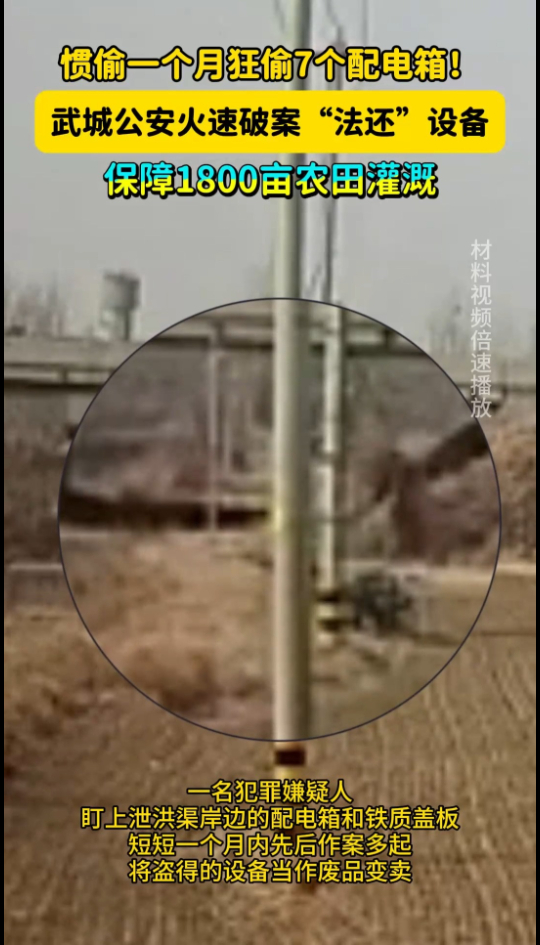 惯偷一个月狂偷7个配电箱!武城公安火速破案“法还”设备,保障1800亩农田灌溉!