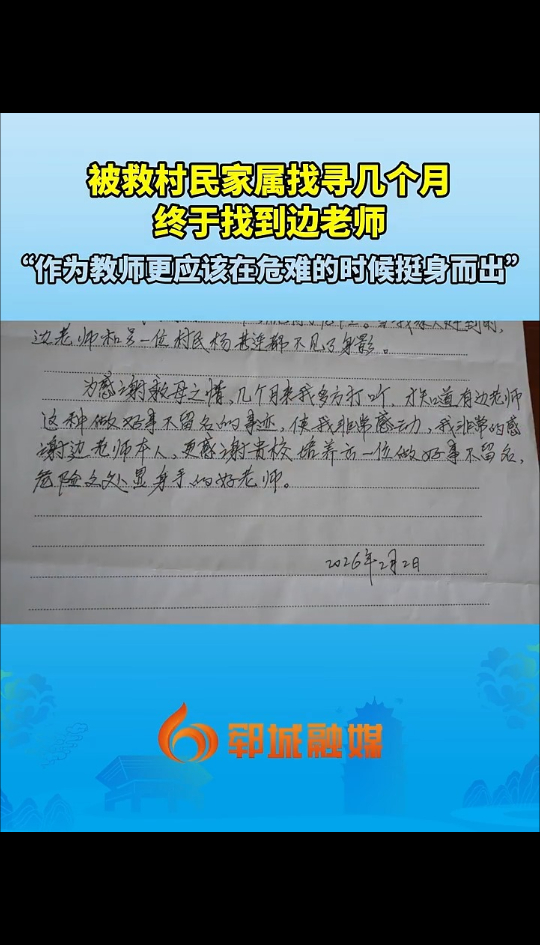 被救村民家属找寻几个月终于找到边老师“作为教师更应该在危难的时候挺身而出”