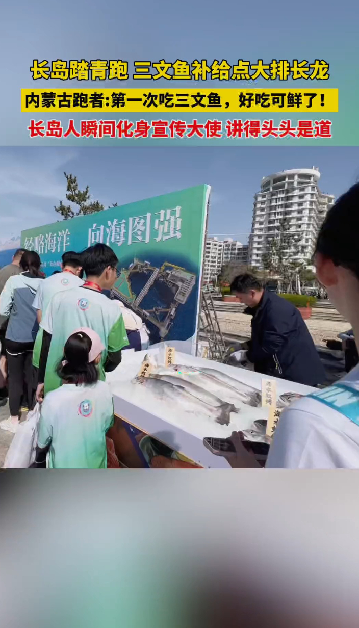 果然视频|长岛踏青跑三文鱼补给点排长龙,内蒙古跑者赞鱼肉鲜美