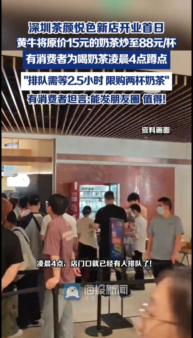 主播说丨深圳茶颜悦色新店开业首日,黄牛将原价15元的奶茶炒至88元/杯