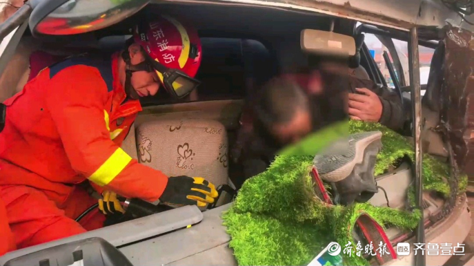 果然视频|货车失控撞上路边水泥线杆,消防员破拆救出被困男子