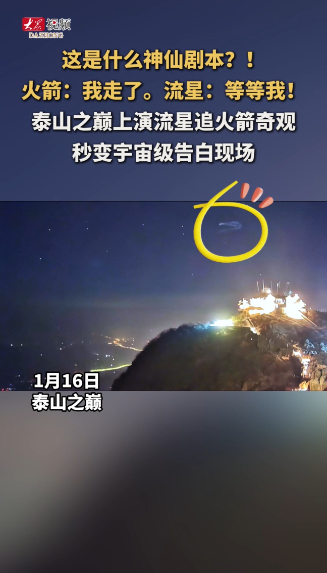 泰山之巅上演流星追火箭奇观!火箭:我走了。流星:等等我!